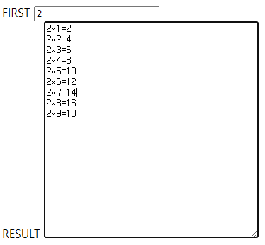 RESULT <textarea cols=40 rows=20 id=result name=result onfocus="gugudan()"></textarea><br>